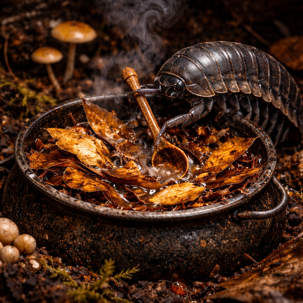 Z czasem liście zaczynają się rozkładać i „pracować” razem z mikrofauną — to naturalny proces, który napędza cały system.